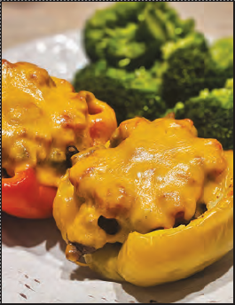 Pour ½ cup water into 9×13-inch baking dish, place peppers in dish. Scoop beef mixture evenly into each pepper half.